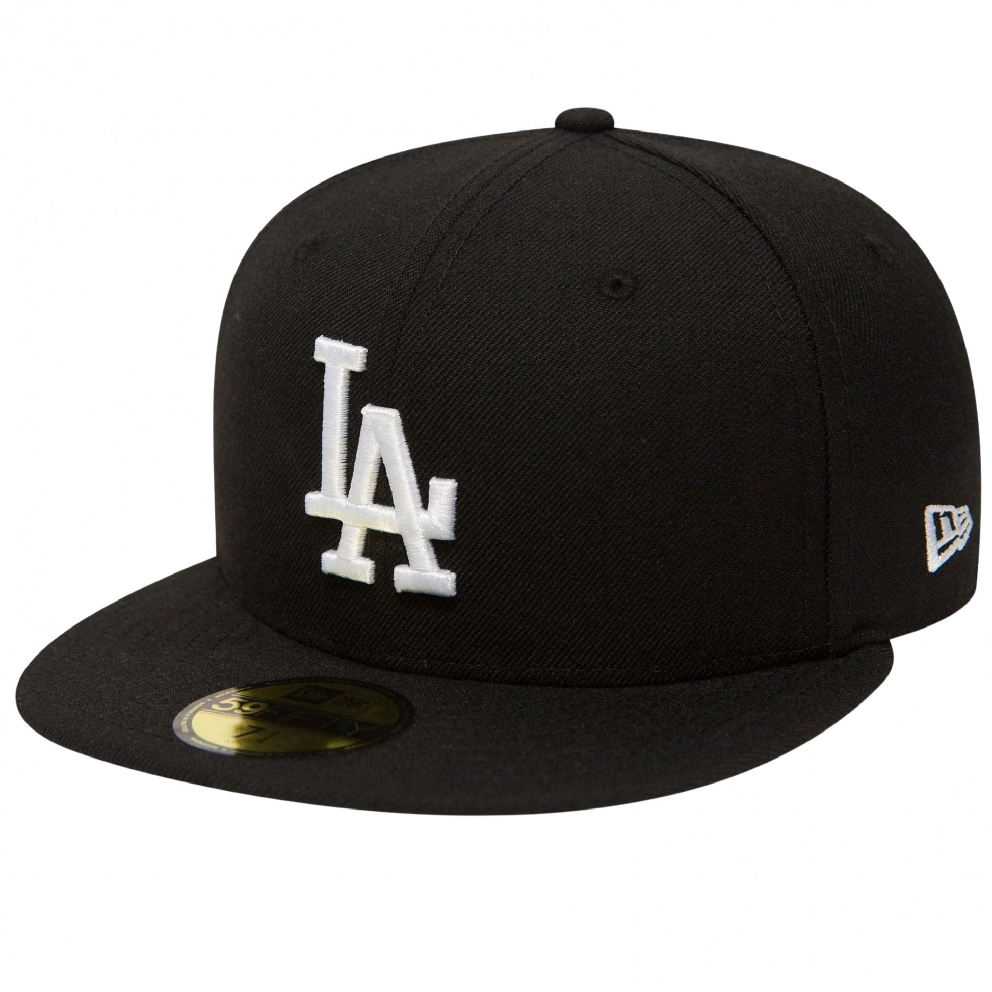 Dodgers 59FIFTY nero essential. Corona aderente, visiera piatta, logo LA